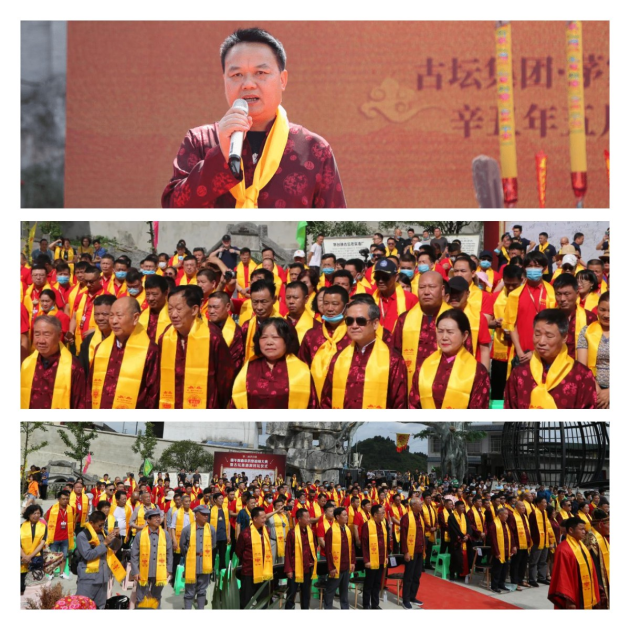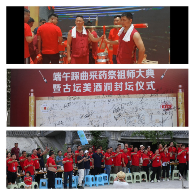辛丑年农历五月初五端午节(2021年6月14日),贵州茅台镇古坛集团“茅家村酱醋厂”在美酒洞广场隆重举办第二届端午踩曲端阳采药祭祖师大典。以虔诚之心敬奉天地,祭拜祖师,敬谢自然恩赐,敬重传统工艺。