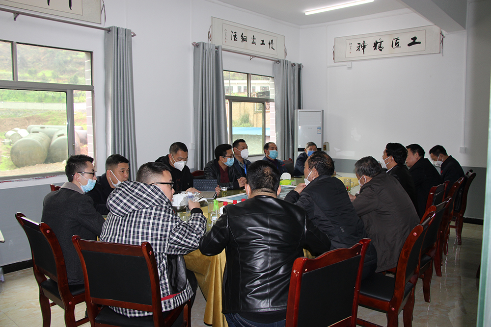 2月28日,仁怀市酒业协会执行副会长、秘书长吕玉华与曹大明等专家组一行走访台福将酒业,对酒企复工后的正常运转及职工的健康监管等问题进行研讨。在生产车间专家组细致查看了厂区各个工作岗位,对生产质量、防疫情况以及厂区环境卫生都给予了高度评价。