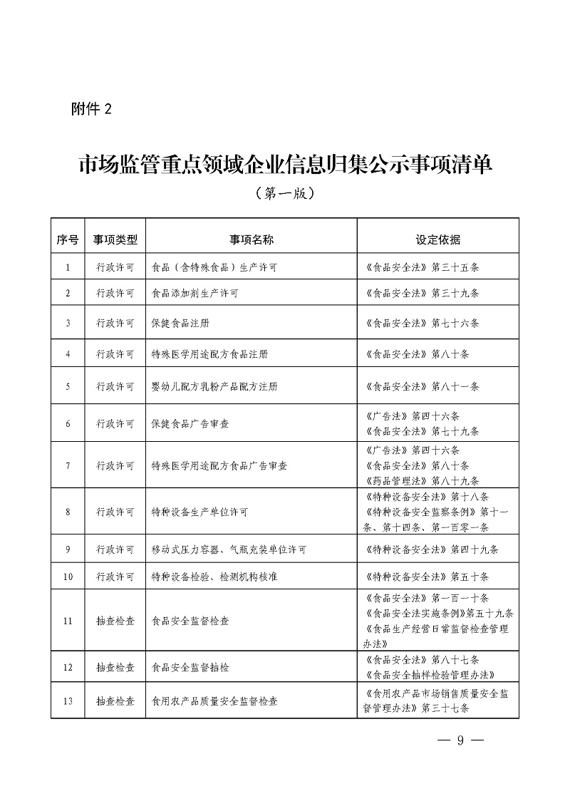 2. 市场监管重点领域企业信息归集公示事项清单(第一版)