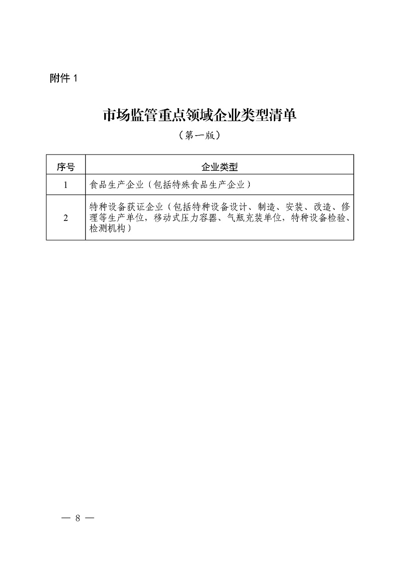 附件:1. 市场监管重点领域企业类型清单(第一版)