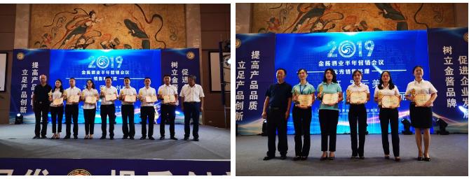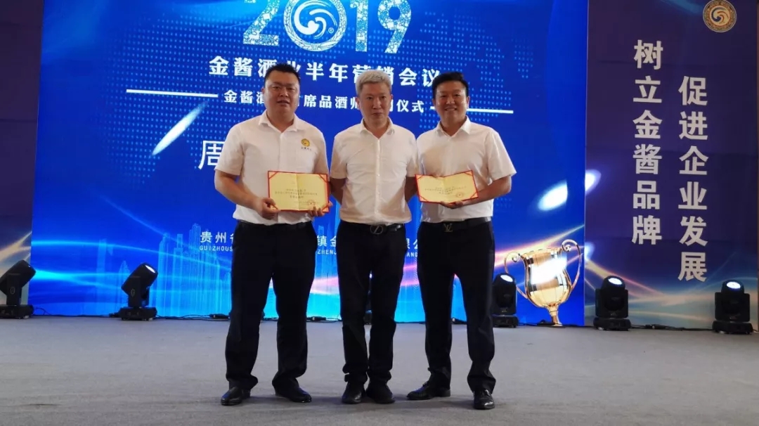 会议上,金酱酒业为其公司41名优秀员工颁发奖状、奖杯,值得关注的是,在颁奖仪式上,金酱酒业聘用了41名优秀员工中的周长康、王弟娃二人为首席品酒师。据介绍,目前,金酱酒业共拥有首席品酒师4人,分别是:王堃、徐竟鸿及刚聘用的周长康、王弟娃。