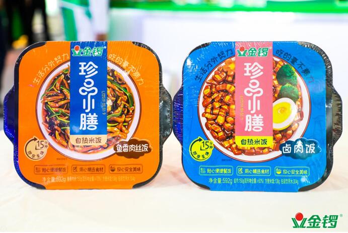 针对新兴人群的消费变化,金锣充分发挥自身产品研发创新优势,推出“珍品小膳”自热米饭,从选材和原料上秉承健康、绿色的高品质路线,在口感上推出具有中国传统特色的卤肉饭和鱼香肉丝饭。展会期间,“珍品小膳”自热米饭首次亮相便引起了现场观众的高度关注。