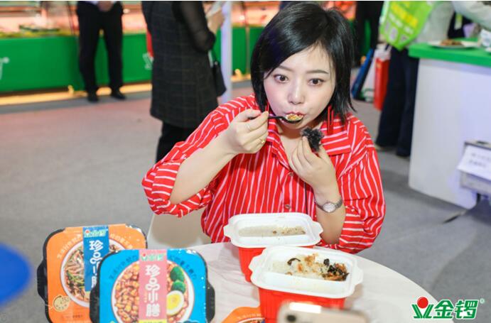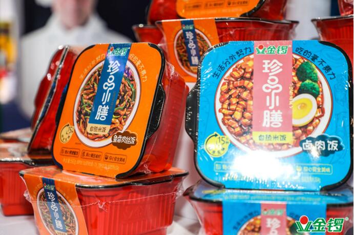 基于这样的消费趋势,解决新兴消费者的“餐桌焦虑”,金锣开发出了更具活力的全新产品“珍品小膳”自热米饭,在本届展会上首度与观众见面,并引发了现场人员的关注。