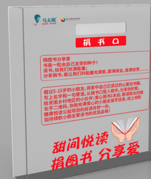据悉,本次活动为“百万糖果悦读计划”公益项目升级的营养内容,计划在河北,山东,天津,北京、河南等区域的永辉、大润发、家乐福等百家门店的马大姐品牌形象柜旁边,投放“甜间阅读—捐图书 分享爱”的专属公益旧书收集柜,联动百城百店,并打通线上推广,进一步扩大活动号召力。