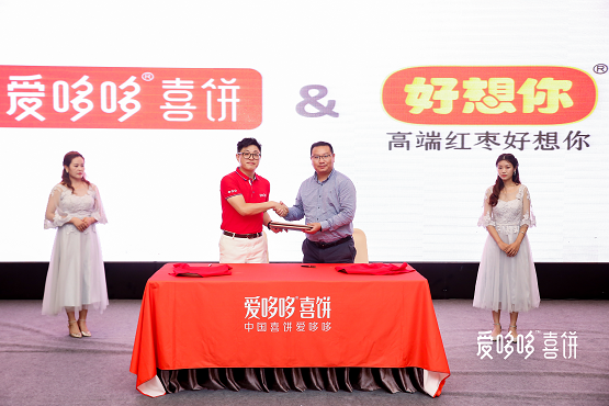 “好时”品牌,风靡美国百年,是首次与喜饼品牌达成战略合作。好时巧克力全国销售总监田磊先生出席本次签约仪式,意味着“好时”未来将跟随爱哆哆踏上喜饼行业蓝海征途;“好想你”以“高端红枣”为品牌定位,整合了公司品牌、产品、渠道等资源优势,与爱哆哆合作开发“喜枣”生产线,好想你销售中心副总经理蔡伟在会上表达了合作期待。