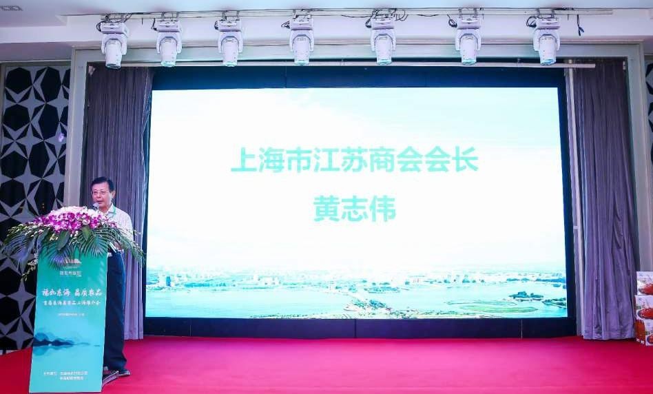 上海江苏商会会长黄志伟先生和秘书长陈伟先生,江苏省驻沪办信息处胡荣处长应邀参加了"福如东海,晶质农品"推介会,其中黄会长和胡荣处长发表了演讲,黄会长在发言中高度评价东海县在农业上取得的成就,对东海农产品走入上海老百姓的餐桌充满信心。黄会长品尝了部份农产品后,不住地点头称赞。黄会长还介绍了商会从2010年成立以来的发展经历,现在商会成员已有6700多家。八年多来在省政府的领导和支持下为家乡的建设发展起了桥梁作用。上海是中国的经济中心,江苏是全国第二的经济大省,GDP一直遥遥领先,上海与江苏強强联手,对于长三角建设起了师范作用。黄会长深情回忆了这八年来全体苏商在上海艰苦奋斗历程,最后号召全体老乡为家乡建设群策群力,添砖加瓦。黄会长热情洋溢的发言赢得全体参会人员的热烈的掌声!