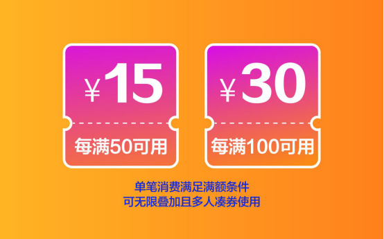 偷偷告诉你,单笔消费满足满额条件,还可以无限叠加且多人凑券使用。