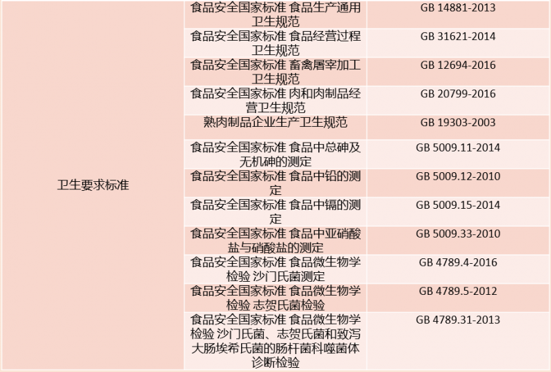 我国肉制品强制性标准体系又包括基础标准、原料及产品标准、卫生要求标准和检验方法标准4个子体系,在整个标准体系中处于核心地位,保障了肉与肉制品的安全。推荐性标准体系包括过程控制标准、产品标准和检验方法标准3个子体系,在整个标准体系中占主体地位,保障了肉与肉制品的质量。