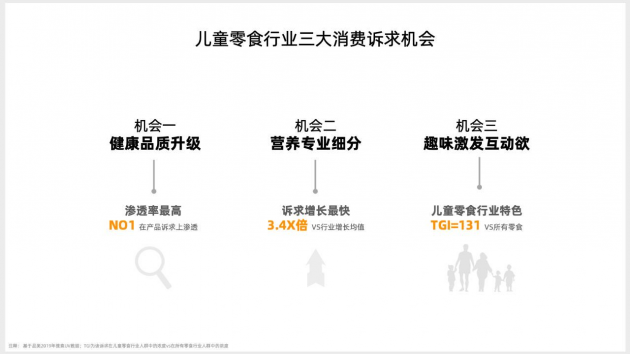 其中,健康、营养、趣味,是儿童零食行业三大消费诉求。