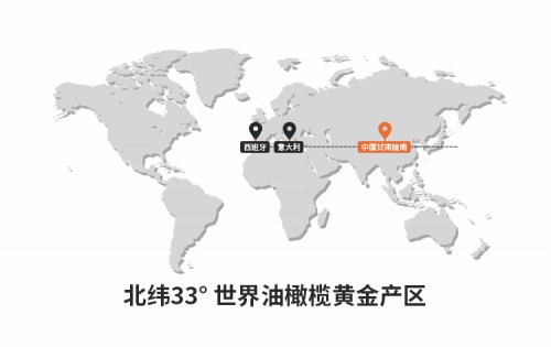 从地理版图上不难发现,陇南地处甘肃省东南部,位于中国版图的几何中心,这里的气候、土壤等与地中海沿岸极其相似,与西班牙、西腊、意大利同处于世界顶级油橄榄黄金生产带 (32 °58--33 °36 )。陇南年平均气温为14 . 7 ° ,年日照时数1911 .70小时 ,年平均降水量 400 -- 900 毫米 ,无霜期 102 天至284 天, 夏季炎热少雨、冬季温和湿润,充足阳光坡地,昼夜适度温差大;土壤中性偏碱,富含钙、镁、硼等微量元素,透气性强,最适宜橄榄果的成熟与油份的积累。据悉,陇南境内白龙江、白水江沿岸海拔 1500米以下低山河谷地带的气候特征、 土壤条件与适合油橄榄种植的地中海气候区极为相似,因此被国际橄榄油理事会划分为世界油橄榄一级适生区,并先后成功引种莱星、阿斯、科拉蒂、小苹果等百余个品种。