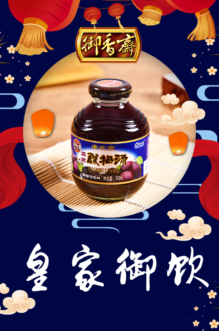 值得一提的,这酸梅汤的方子正是当年乾隆爷最爱的御茶坊酸梅汤,后于机缘巧合下被掌事带出,创建了这御香斋。正是基于对于口感和品质的追求,御香斋酸梅汤凭借独特的乌梅提纯萃取风味,享誉神州大地,喝过的人皆赞不绝口。这种中华风味更是出口海外,为国争光,远销欧美大陆和大洋洲等世界各地,走进千家万户,成为了深受喜爱的四季养生饮品。