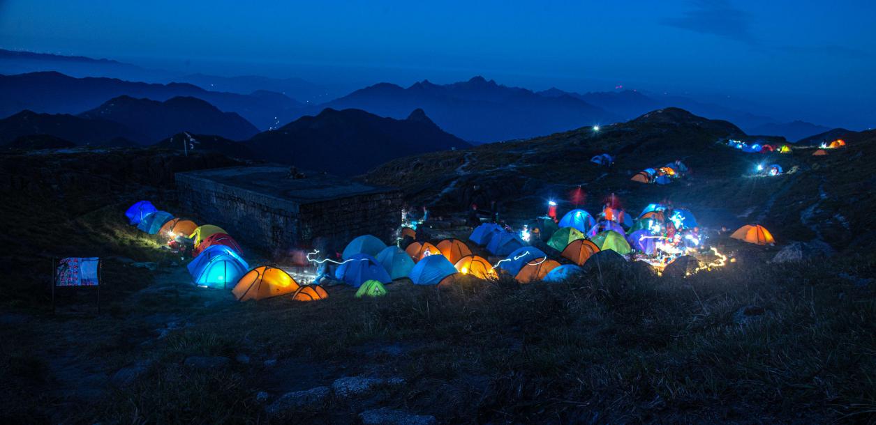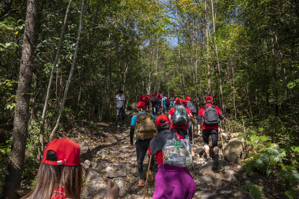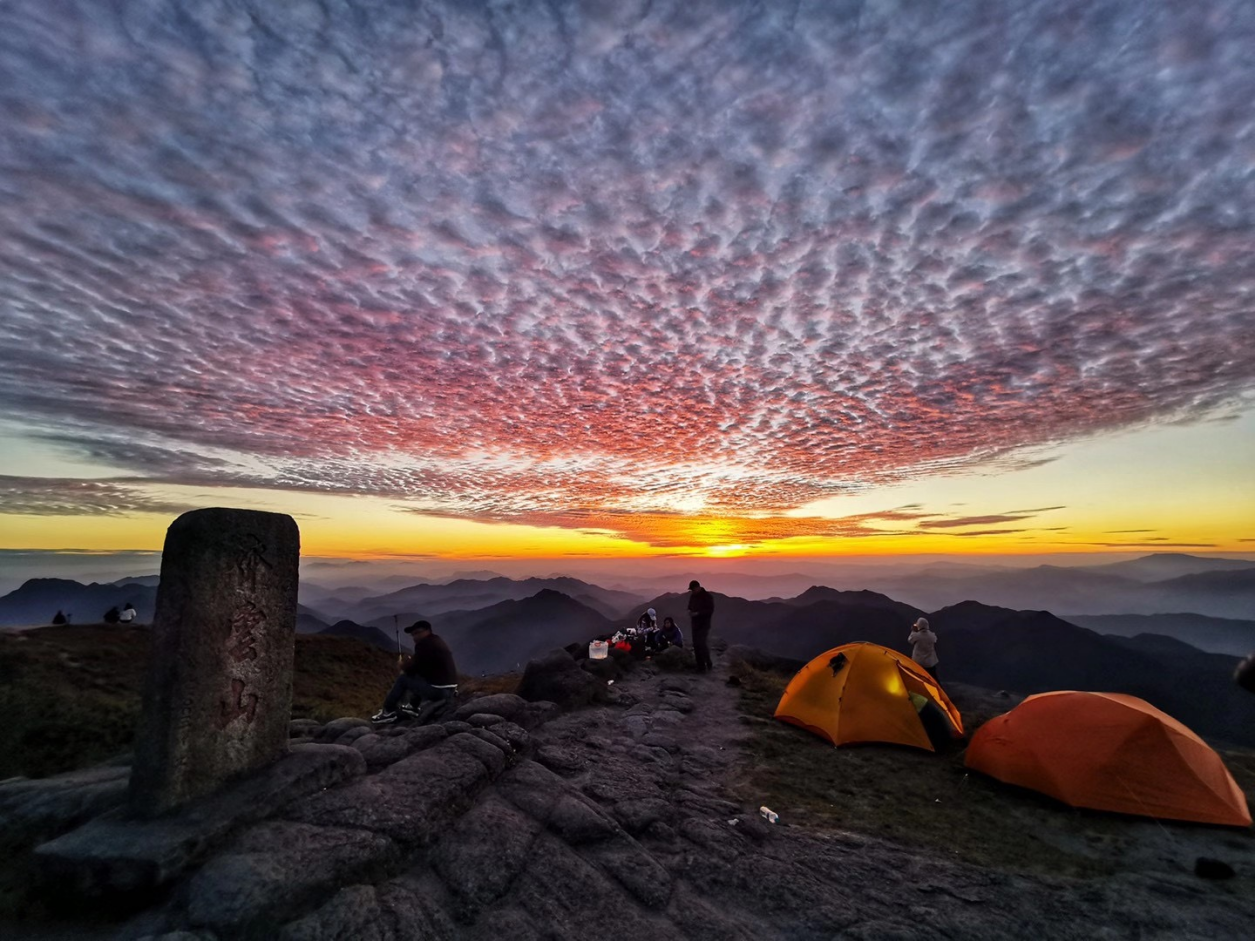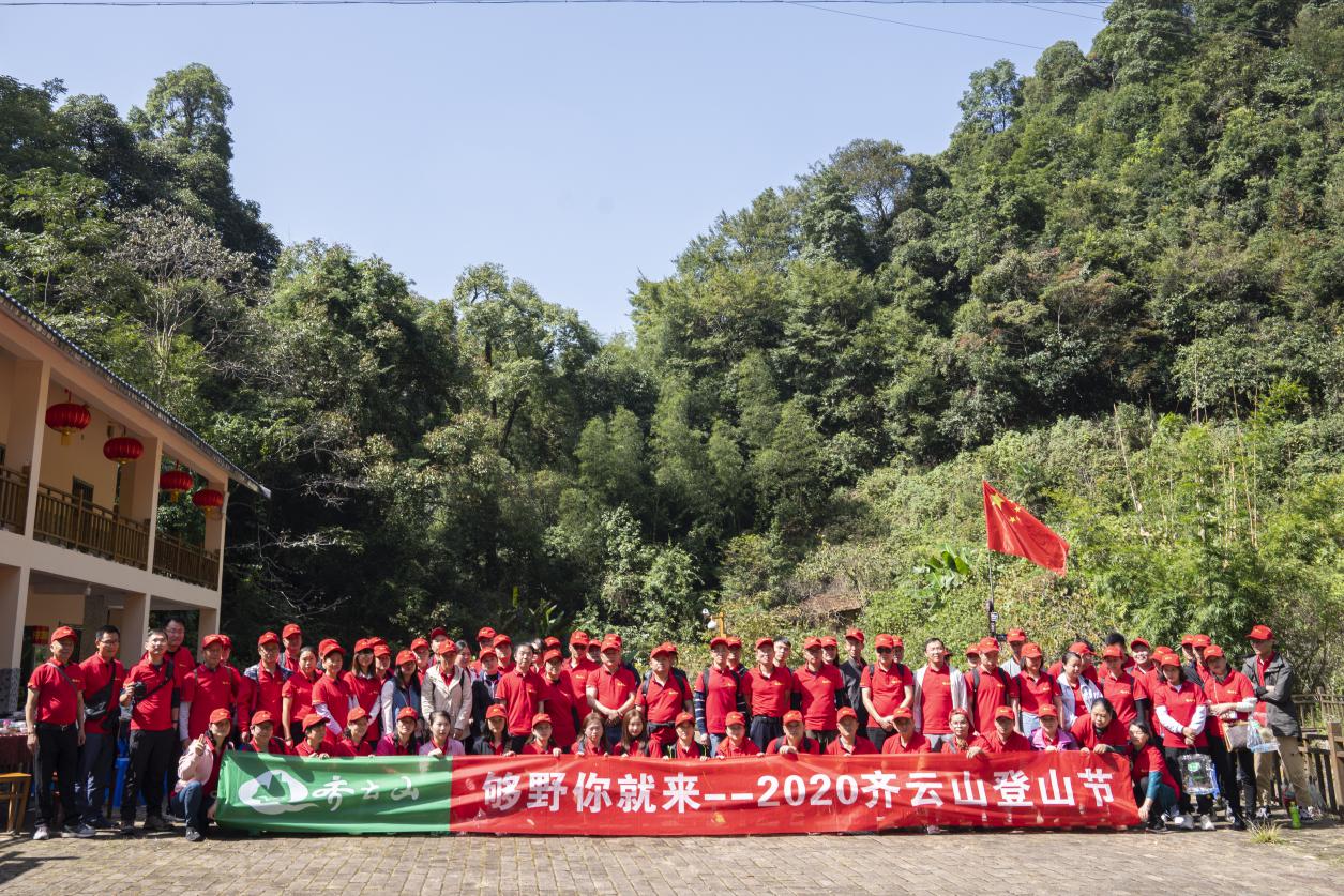 在九九重阳登高日,浩浩荡荡的红色队伍在齐云山上形成一道靓丽的风景线。大队人马勇攀齐云山高峰,曲折的石子小路、手脚并用的山坡、近60度的陡坡……登山队伍不畏艰难依然前行。登顶后巍峨的云峰上,霎时峭壁生辉,脚下山林云消雾散,满山苍翠。镶嵌在天边的连绵起伏的山峦,在夕阳的照耀下反射出闪闪的金光,显得分外壮丽。最后,全体人员齐聚秀美的齐云山,共同挑战成功海拔2061.3米的赣南第一高峰,于山顶举办篝火晚会和露营,欣赏壮美的日落与日出。