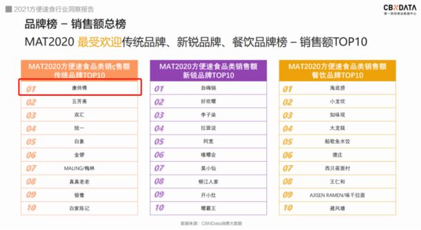 康师傅稳居方便速食最受欢迎品牌头名,数据来源《2021方便速食行业洞察报告》