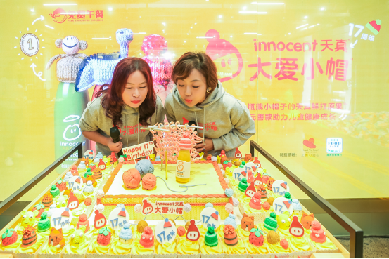 大爱小帽™今天就满17岁了,成年未满,爱意满满。在生日会上,innocent天真™与每一位相邀的客人和路过的朋友们一起分享快乐。innocent天真™找来了可爱的中国小果伴们,一起动手织小帽子,吹蜡烛吃蛋糕,庆祝这个充满爱的大日子。