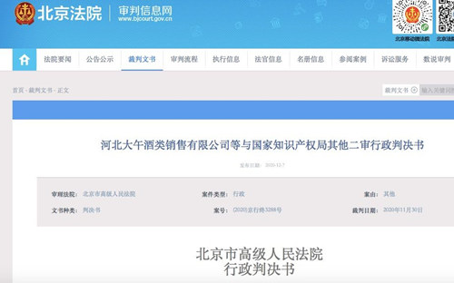 北京法院审判信息网12月7日发布了一则河北大午酒类销售有限公司(以下简称“大午酒类”)与国家知识产权局以及四川省宜宾五粮液集团有限公司(以下简称“五粮液”)之间的知识产权纠纷终审判决书,北京市高级人民法院支持了国家知识产权局以及五粮液关于大午酒类部分商标与五粮液的部分商标存在近似的认定。