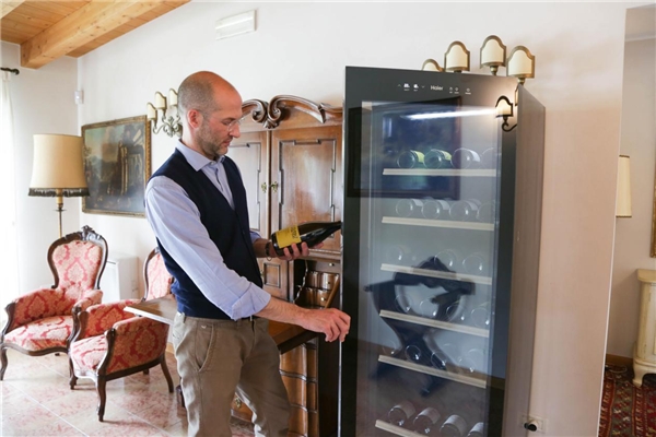 存放在海尔酒柜中的正是阿玛罗尼葡萄酒。这一款葡萄酒此前已获柏林葡萄酒大赛金奖、德国国际葡萄酒大赛夏季品鉴金奖等诸多殊荣。为给贵宾们品鉴,歌朗酒庄会从酒窖中拿取一部分葡萄酒放于会客厅,海尔酒柜就承担起存储这些佳酿的工作,确保葡萄酒更好得保存,达到最佳饮用口感。
