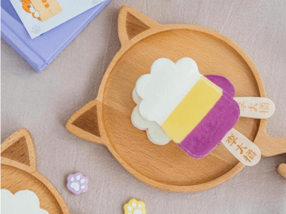 新品以美年达百香果菠萝味为灵感,结合橘猫IP冰淇淋的喵星人设定,独特的猫咪萌爪外形搭配沁爽酸甜的混搭果味,视觉可爱,味道冰爽,一面世就收获了大量好评,极具破圈属性。产品方面,纯白色牛乳、柠檬黄色菠萝味冰沙,紫色百香果味冰沙,共同组成了三个颜色、三种口味,新奇和丰富度也堪称匠心之作,收获了行业和粉丝的广泛好评。