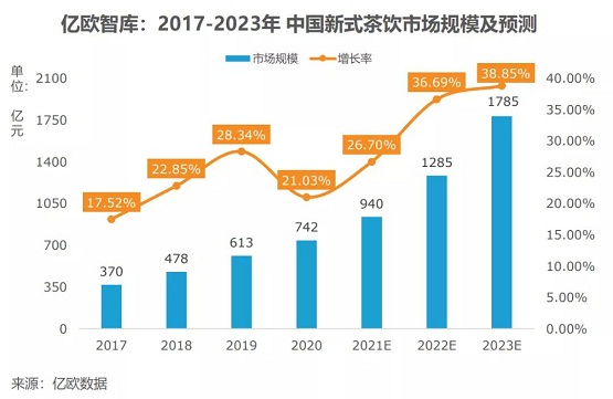 2017~2023新式茶饮市场规模及预测