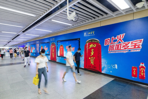 今年5月以来,加多宝品牌广告强势布局上海、杭州、西安等全国20多个核心城市高铁站,强势刷屏首都北京及成都、武汉、长沙等众多省会城市核心商圈大屏。与此同时,加多宝于6月启动地铁广告投放,实力霸屏北京、深圳、杭州等数十个重点城市核心地铁站。短短1个多月时间,品牌曝光联动近百城,预估触达人群超1亿人次,气势如虹。