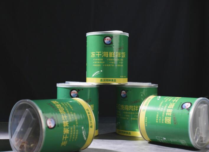 昌沃冻干系列产品外包装皆采用圆柱体罐状设计,同等容积下,占用的空间更小,100~130克的内容物净含量几乎可以让人忽略掉分量感。但这小小的一罐却能满足一个成人正常的一餐所需,可谓”小块头,大能量“。