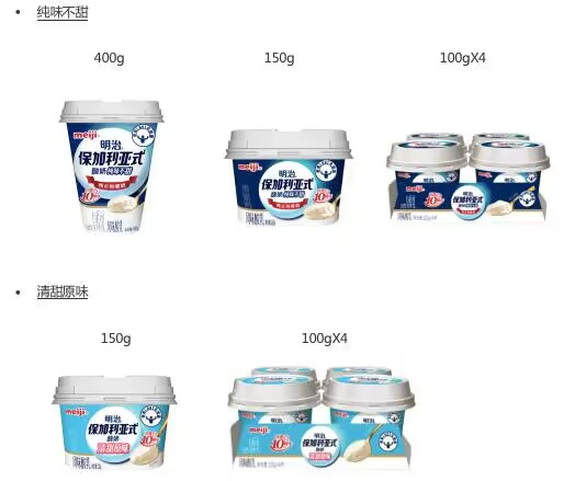明治保加利亚式酸奶凝固型系列于2013年12月在中国上市,使用起源于保加利亚的LB81乳酸菌,通过乳酸菌的力量自然发酵凝固而成,口感浓厚顺滑、入口即化。上市后以其独特的口感迅速获得了消费者的喜爱。 2017年10月明治还推出了易于饮用及携带的瓶装保加利亚式轻酸奶系列产品,同时也增加了多种口味,丰富了消费者的选择,受到了广泛好评。
