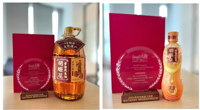在本次考察交流会中,胡姬花古法小榨花生油借全球花生产业研究院国内外院士专家之力,聚焦花生全产业链的种植端食安科研,率先实践落地,加速推进花生产业经济效益,为粮食丰收提供了重要支撑。传承百年非遗古法技艺精髓,胡姬花古法小榨花生油融会贯通老祖宗榨油智慧的同时,也将胡姬花非遗古法技艺精髓带向了世界舞台。在世界食品科技大会中,胡姬花古法小榨花生油,胡姬花古法花生油蒸鱼专用油荣获【2024年全球食品工业奖最佳产品风味奖】奖项。